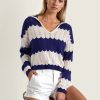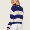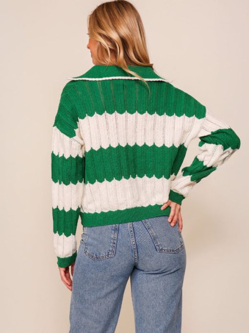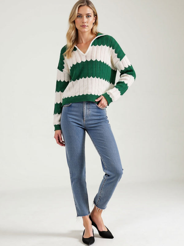 Add a touch of texture to your wardrobe with this crochet wavy stripe collared sweater. Designed with intricate crochet details and eye-catching wavy stripes, this sweater blends vintage charm with modern flair. The soft knit fabric ensures comfort, while the collared neckline adds a refined touch. Wear it with trousers or denim for an effortlessly stylish ensemble.
