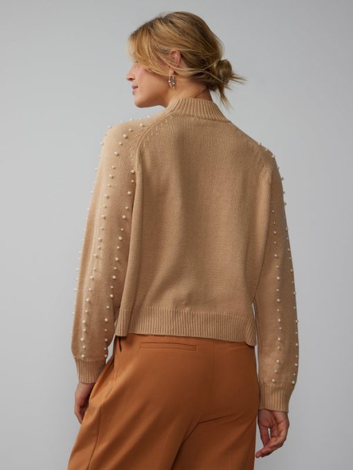 Make a lasting impression in this chic and cute sweater for women. Adorned with beautiful pearl embellishments, this sweater features a mock neck and long sleeves for a timelessly elegant ensemble. Pair it with jeans or high-waisted trousers for an effortless, yet glamorous look.