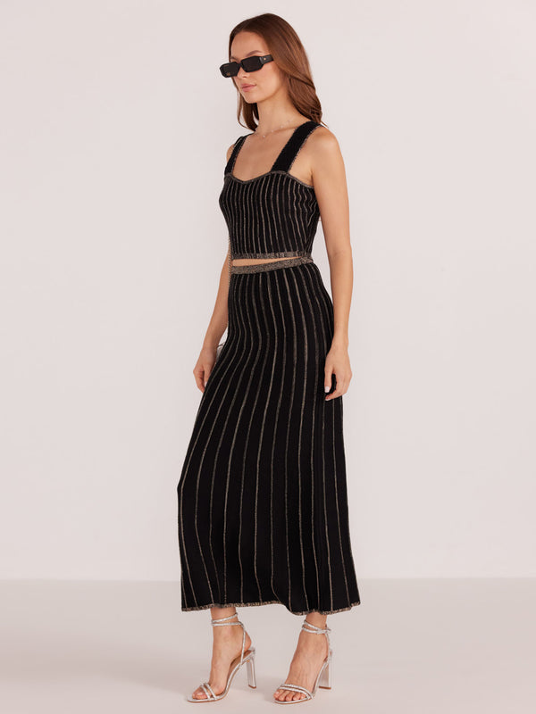 Shimmer with confidence in the Celia Crop Top. Crafted from a soft rib-knit fabric with subtle lurex stripes, this fitted top adds the perfect touch of sparkle. Featuring a flattering cropped length and a sleek silhouette, it’s ideal for pairing with high-waisted skirts or jeans. Dress it up with heels or keep it casual with sneakers for an effortless glam look.
