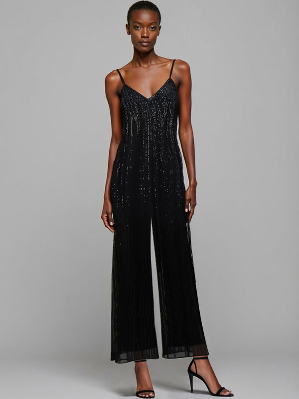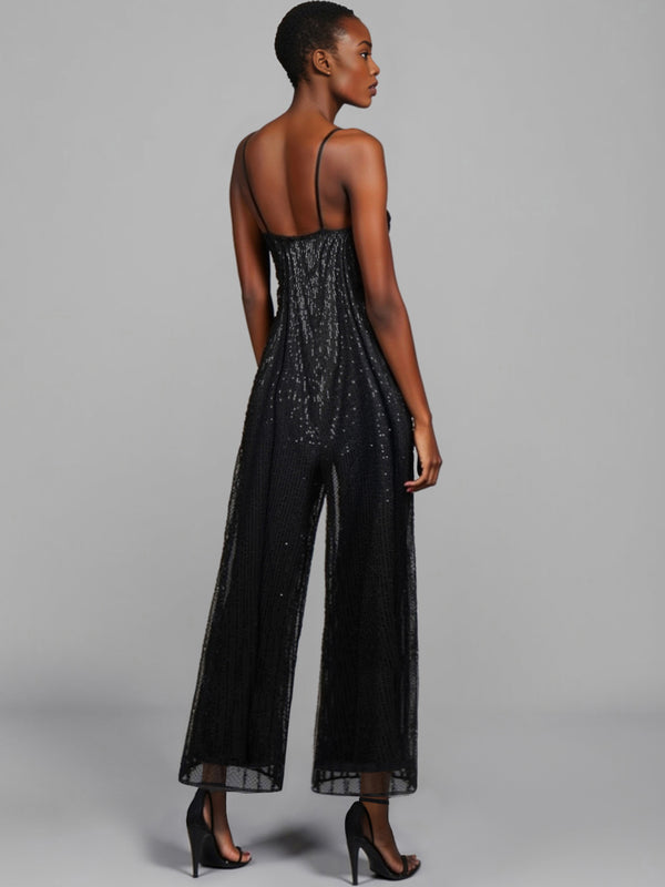Sleeveless V-Neck Cami Sequin Jumpsuit